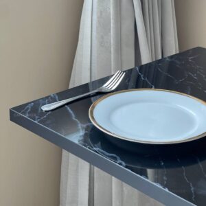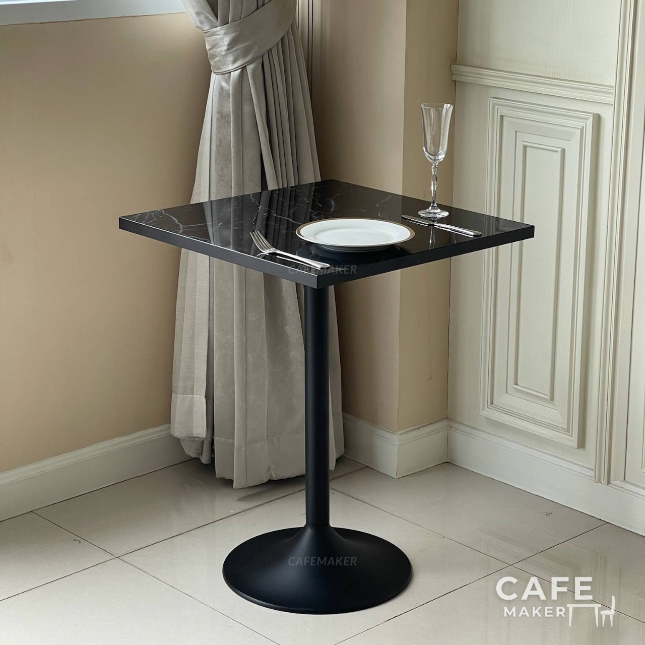 โต๊ะไม้สีดำลายหินอ่อน พร้อมกับขาโต๊ะทรงกลม
