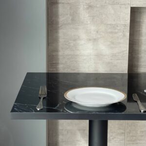โต๊ะไม้สีดำ พร้อมกับขาโต๊ะทรงโรมันสีดำ
